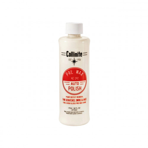 POLISH PASTA COLLINITE 390 PRE WAX AUTO POLISH 473ml toate noile lustruiri micro-abrazive, sigure, cu acoperire limpede, elimina defectele minore ale vopselei, cum ar fi zgarieturile / vartejurile fine, petele de apa, oxidarea usoara si urmele de spalare de la suprafata; finisarea in jos pentru a conferi o stralucire neteda, cu luciu ridicat, facilitand in acelasi timp aplicarea usoara si imbunatatirea legaturii oricaruia dintre ultimele etape de ceara durabile ale lui COLLINITE No.845,476 sau 915. Nu se utilizeaza pe cauciuc sau finisaj negru-plastic. Fabricat manual si turnat in SUA.
