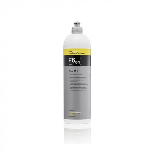 KOCH CHEMIE POLISH MEDIU F6.-FINE CUT 1 ltr Polish mecanic inteligent de ultima generatie, cu oxid de aluminiu de o calitate unica. Granulele abrazive inteligente asigura indepartarea completa si rapida a urmelor fine de zgatieturi de la spalare si a altor urme de uzura similare, redand vopselei o stralucire profunda, de lunga durata.Urmele de slefuire de la slefuirea cu 2500 sunt inlaturate fara efort. Fine Cut F6.01 este de aceea ideal pentru o reconditionare perfecta a vopselei cu uzura medie pana la severa. Coordonata perfect cu tratamentul vopselei rezistente la zgarieturi. Cu aprobare Daimler.