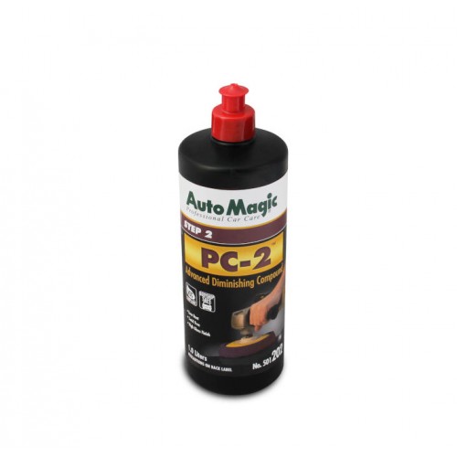 Automagic PC -2 Advanced Diminishing Compound este un polish avansat cu diminuarea particulei abrazive, care se comporta remarcabil pe toate tipurile de vopsea noua sau veche. Datorita tehnologiei unice micro abrazive elimina imperfectiunile din stratul de lac rapid si usor. Indeparteaza rapid zgarieturile produse de smirghel granulatie 2000, panza de paianjen, urmele lasate de ploaia acida, oxidarea si alte imperfectiuni medii ale vopselei. Acest sistem versatil corecteaza vopseaua lasand in urma o culoare profunda si un luciu remarcabil. Se indeparteaza usor si rapid. Galon :1 litru